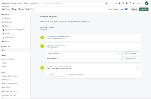 Create Plays that prompt the user to add a Person to a Cadence in response to a signal.