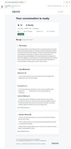 View Conversations Key Moments are available Conversations Navigator and inside the “Your Conversation is Ready” email template.